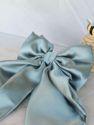 $14.00Handmade USA large satin bow. 6″ wide Sage Green satin bow with 10″ long tails. Elegant & high-quality hair accessory. Perfect for coquette style.
