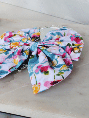 $12.00Introducing the exquisite Claire Bow—a bright, cheerful statement piece that perfectly defines the timeless essence of fresh and Beautiful Girlhood. This large cottage core floral hairbow is an Heirloom piece, crafted from high-quality cotton featuring a vibrant floral print in shades of fuschia, teal, and yellow gold. Every fold speaks to our commitment to Quality Workmanship,…